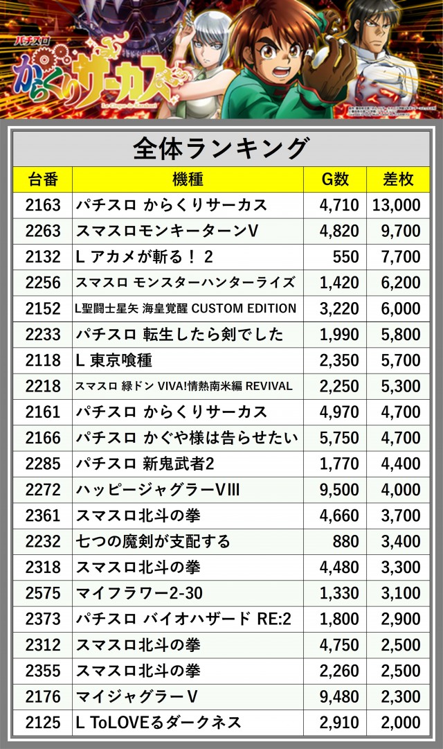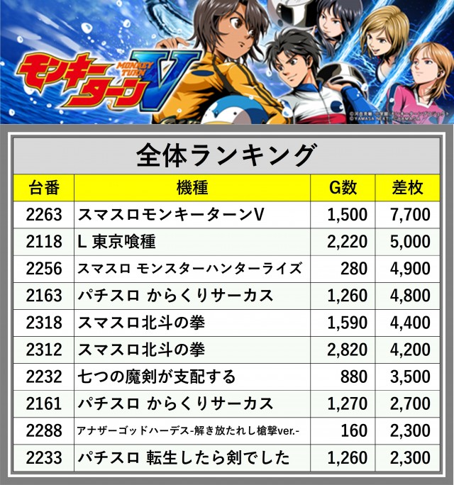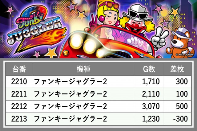 厳選された取材対象機種をはじめ、その他スロット全体から好記録が飛び出した!プレイヤーが楽しんだ1日を下記データにて振り返ってみて欲しい。