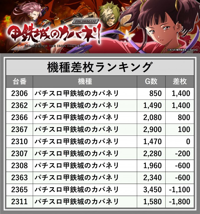※差枚数順に掲載しています