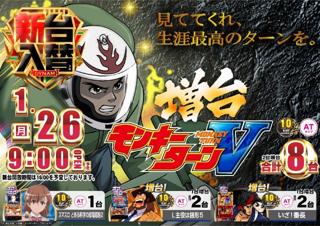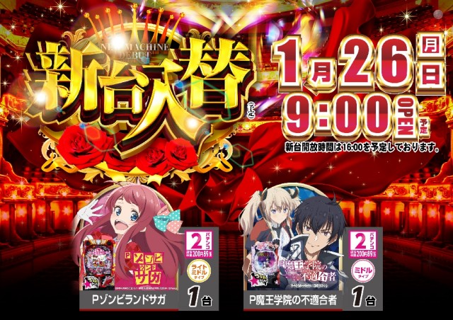本日1月26日(月)新台入替(予定)