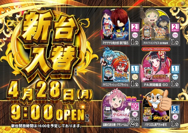 本日4月28日(月)新台入替(予定)