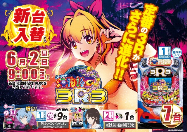 本日6月2日(月)新台入替(予定)