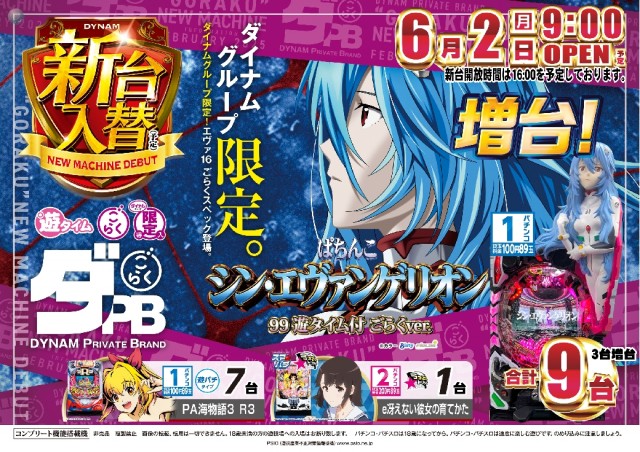 本日6月16日(月)新台入替(予定)