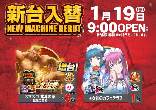 本日1月5日(月)新台入替予定