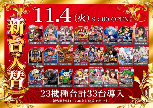 1位 10月23日(木) 2位 11月1日(土) 3位 11月8日(土)