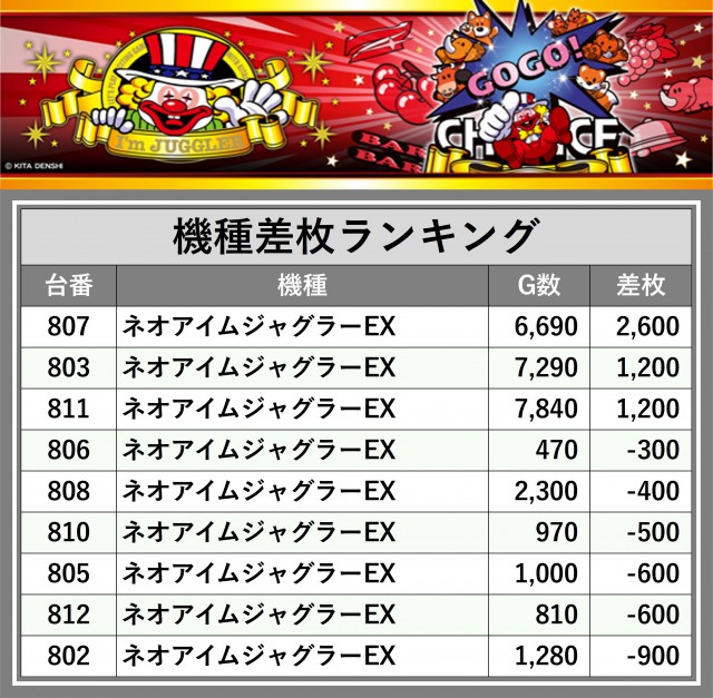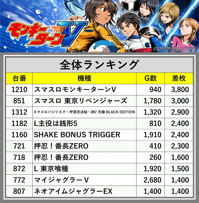 厳選された取材対象機種をはじめ、その他スロット全体から好記録が飛び出した!プレイヤーが楽しんだ1日を下記データにて振り返ってみて欲しい。