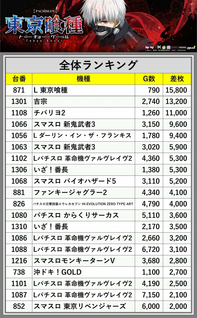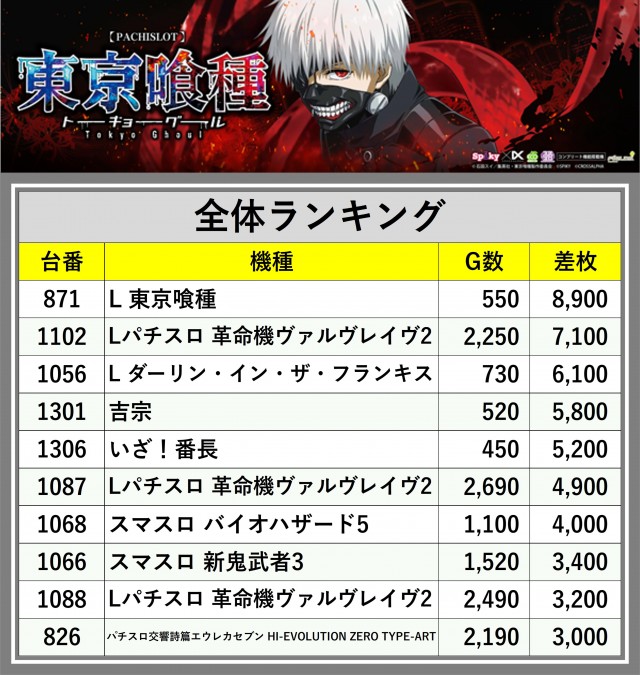 厳選された取材対象機種をはじめ、その他スロット全体から好記録が飛び出した!プレイヤーが楽しんだ1日を下記データにて振り返ってみて欲しい。