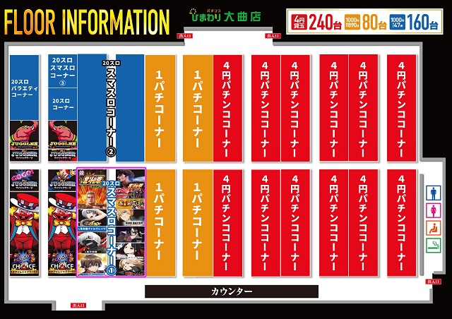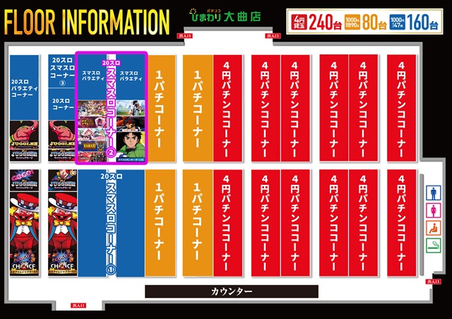 [パチ]4円 240台 1000円/890玉 80台 計320台 |