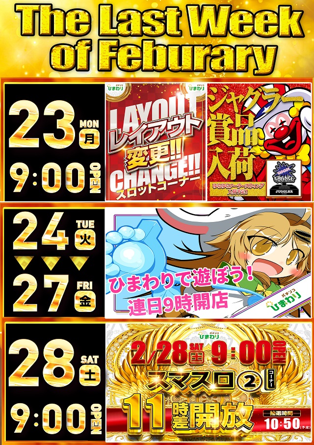 1位 2月2日(月) 2位 2月3日(火) 3位 2月21日(土)