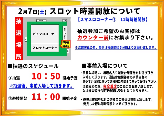 開店30分前の時点で並び順が9名以下の場合は並び順での入場とさせて頂きます。開店入場時に物を置いての場所取りはお断りしています。 |