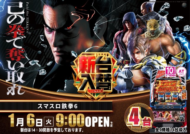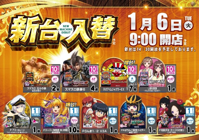 明日1/6(火)新台入替予定!!