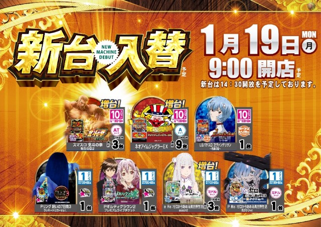 明日1/19(月)新台入替予定!!