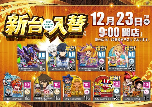 明日12/23(火)新台入替予定!!