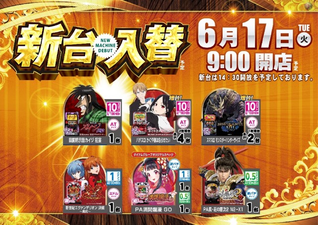 明日6/17(月)新台入替予定!!