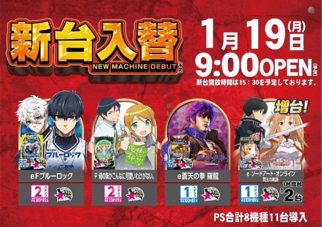 本日1月5日(月)新台入替(予定)