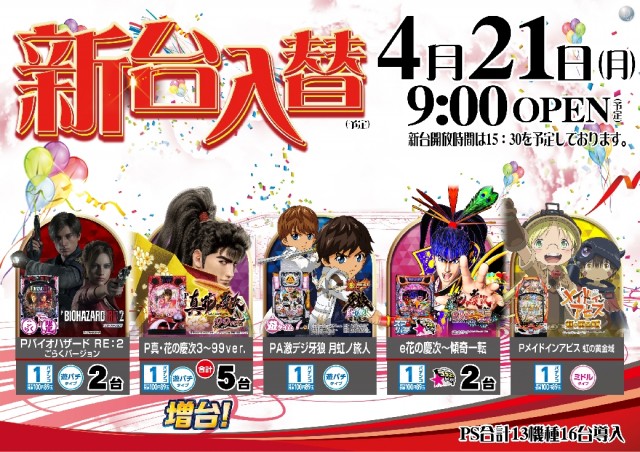 ダイナム 秋田たかのす店 ゆったり館のお知らせ一覧
