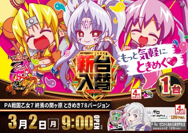 本日3月2日(月)新台入替(予定)