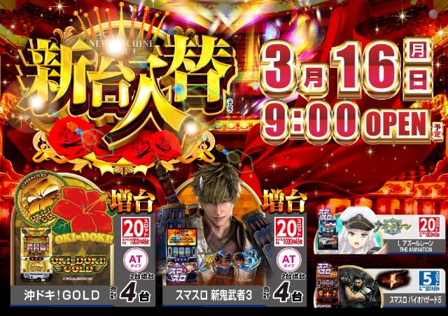 本日3月16日(月)新台入替(予定)