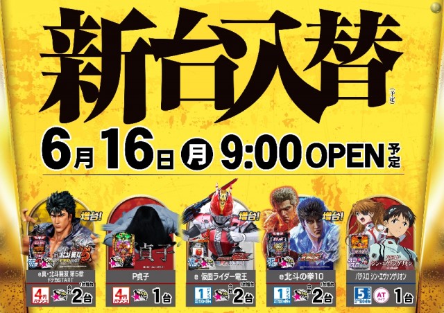本日6月16日(月)新台入替(予定)