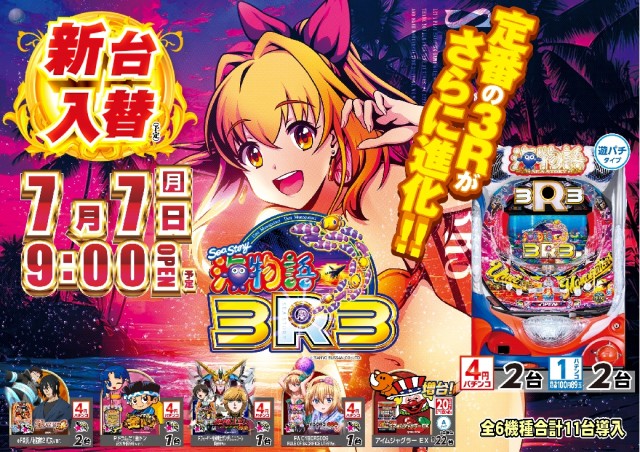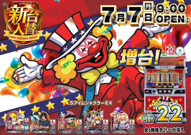 本日7月22日(火)新台入替(予定)