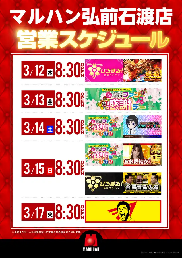 ★マルハン弘前石渡店★本日新台入替3日目!!