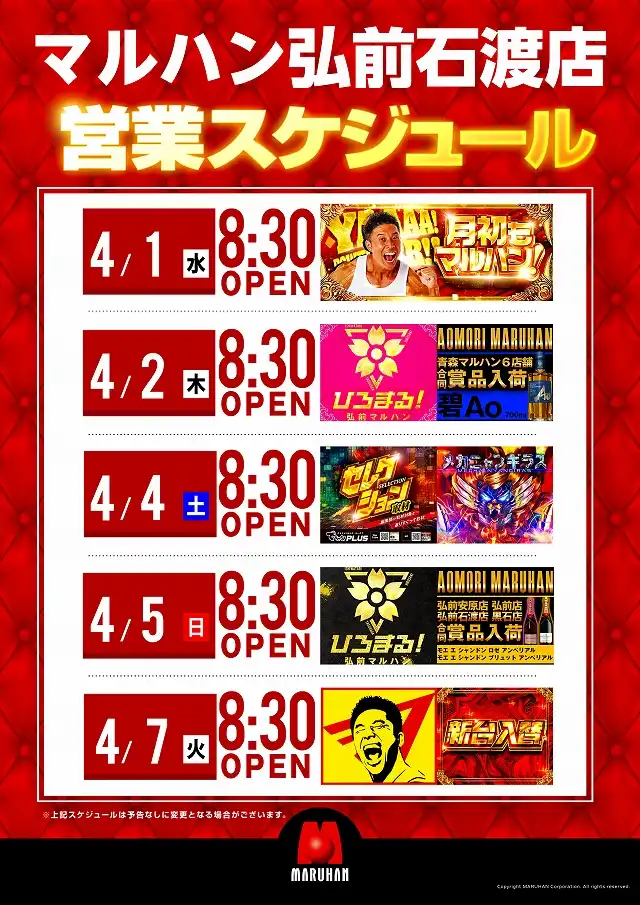 ★マルハン弘前石渡店★本日新台入替2日目!!