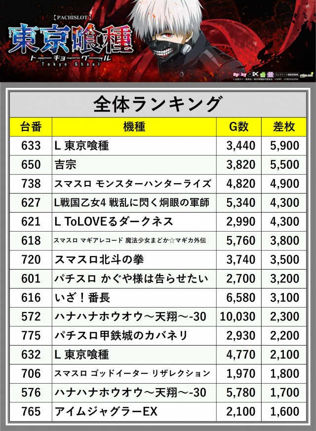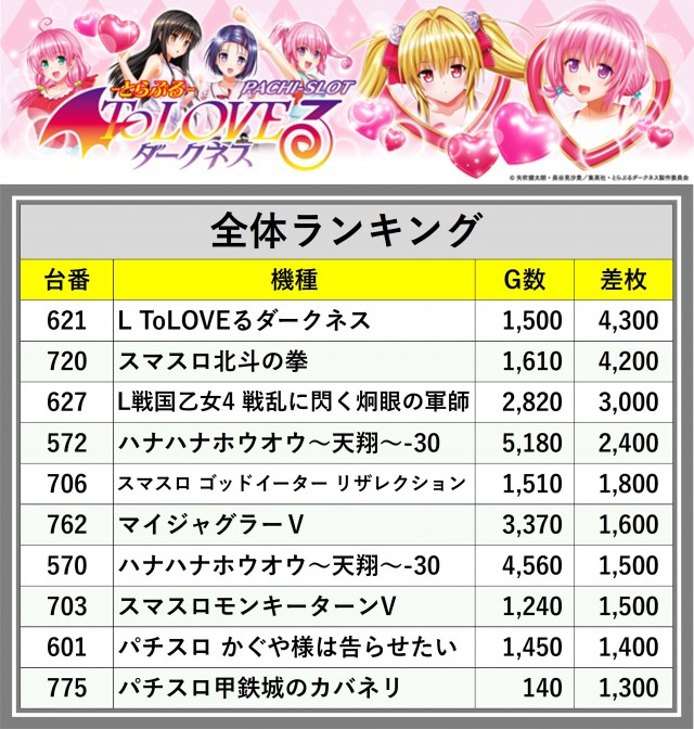 厳選された取材対象機種をはじめ、その他スロット全体から好記録が飛び出した!プレイヤーが楽しんだ1日を下記データにて振り返ってみて欲しい。