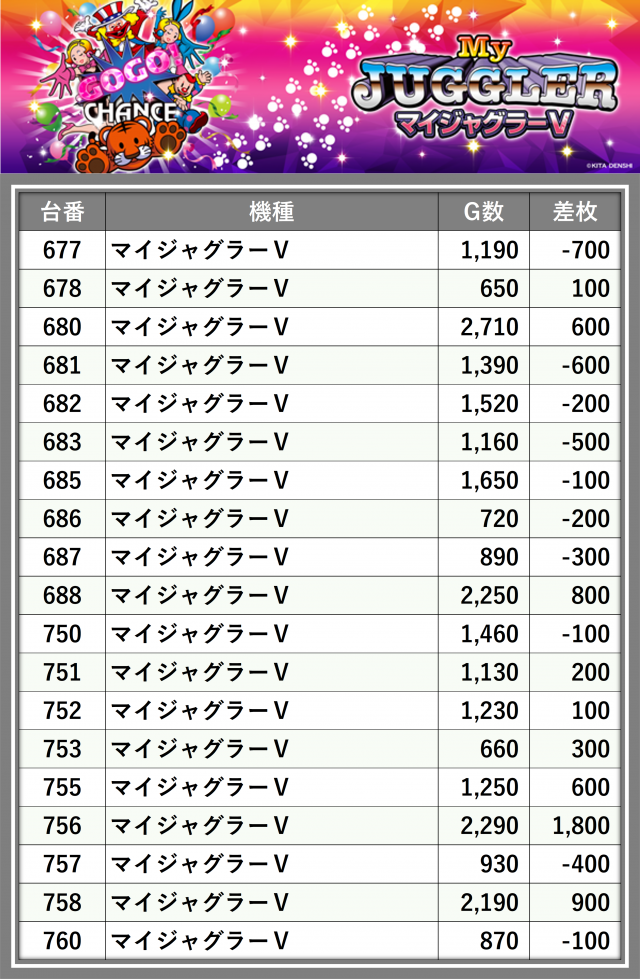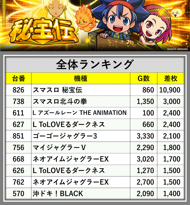 ※差枚数順に掲載しています