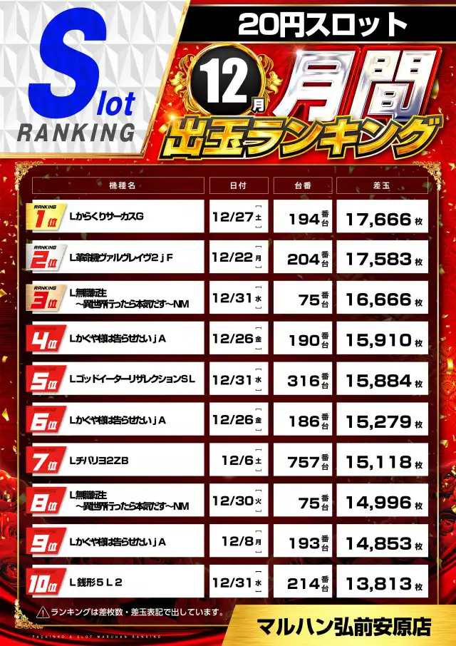 マルハン弘前安原店の機種情報