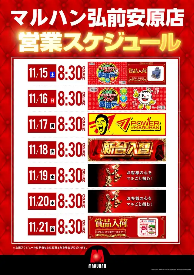 当日抽選締切:8時00分 *店頭にて入場抽選を行います。 |
