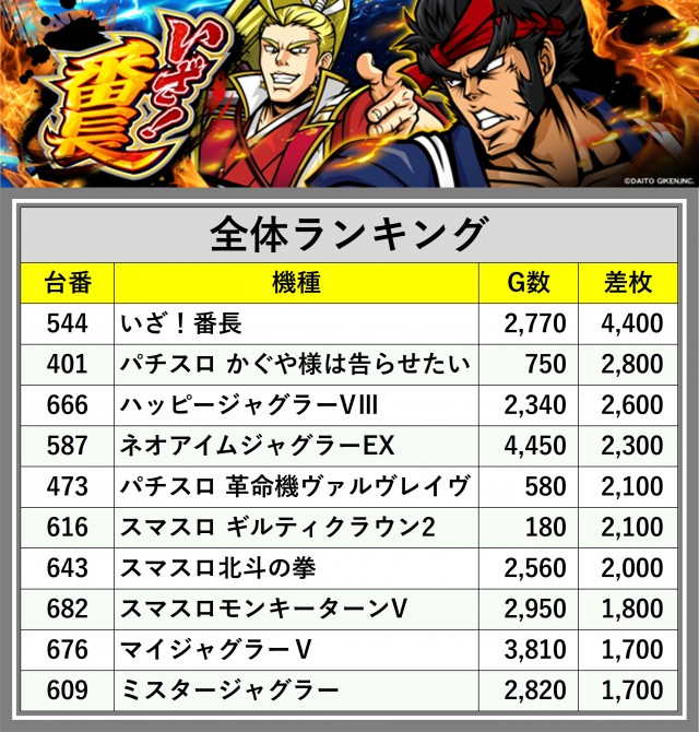 厳選された取材対象機種をはじめ、その他スロット全体から好記録が飛び出した!プレイヤーが楽しんだ1日を下記データにて振り返ってみて欲しい。