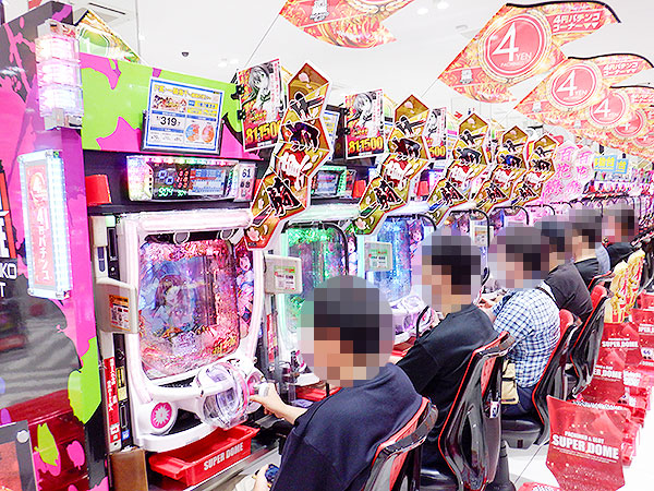 14時ごろの4円パチンコを見てみると「P Re:ゼロから始める異世界生活 鬼がかりver.」や「P真・一騎当千~桃園の誓い~」が盛況の様子。機種のポテンシャルを上手く発揮するプレイヤーを多数確認している。
