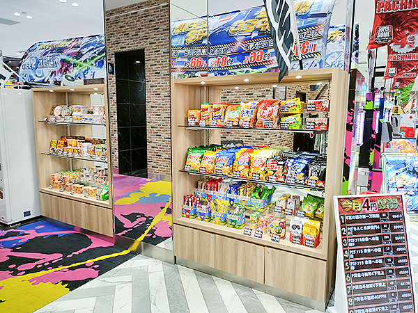 景品コーナーにはお菓子やインスタント食品が豊富に用意されており、おみやげ選びも存分に楽しめることだろう。