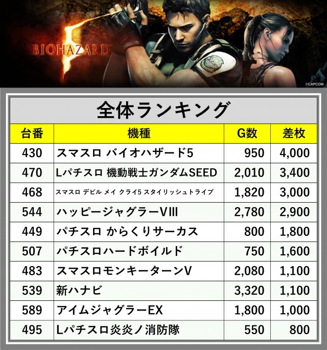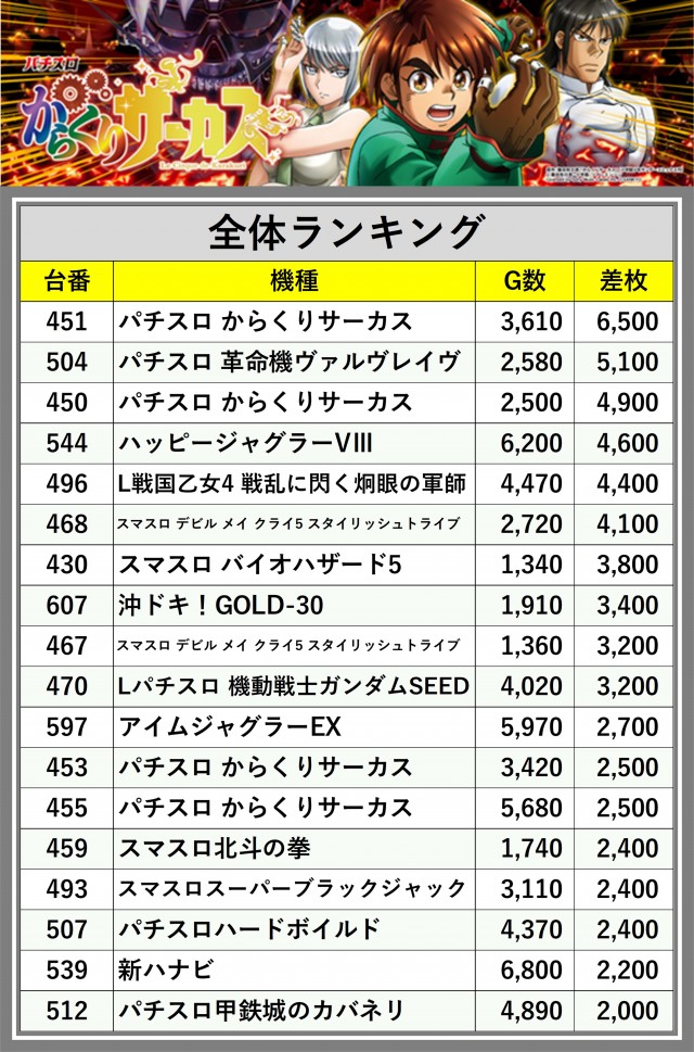 ※差枚数順に掲載しています