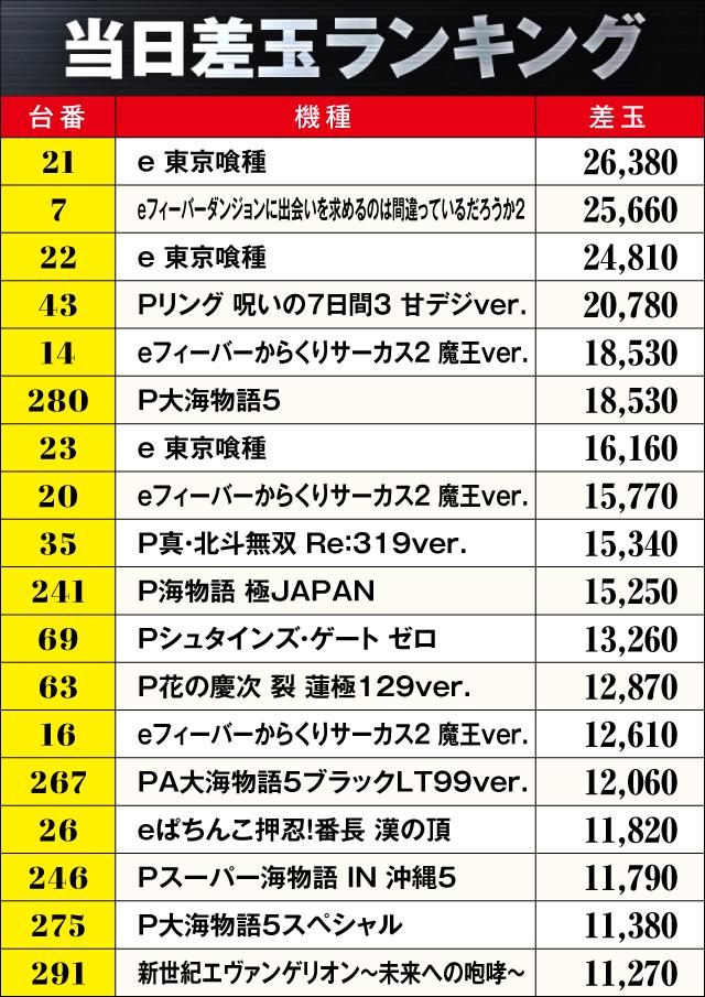 当日差玉ランキング