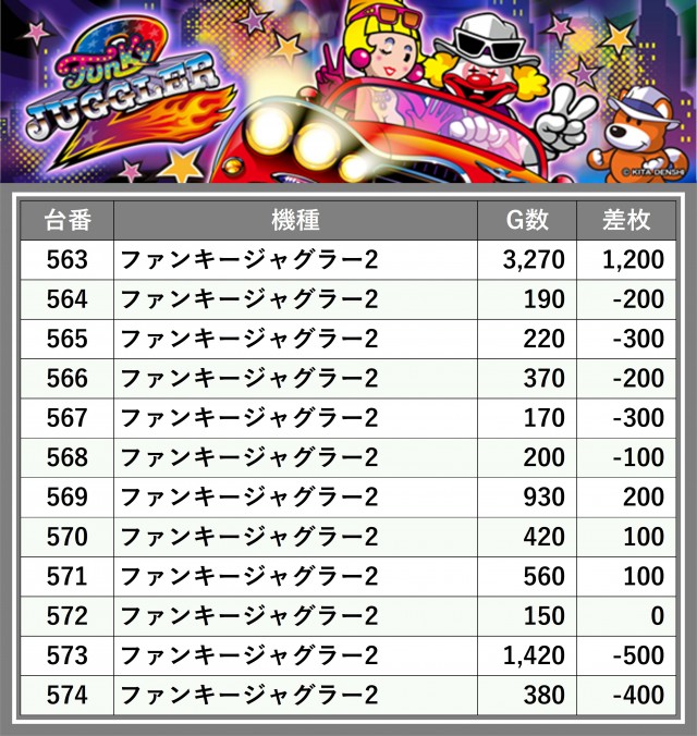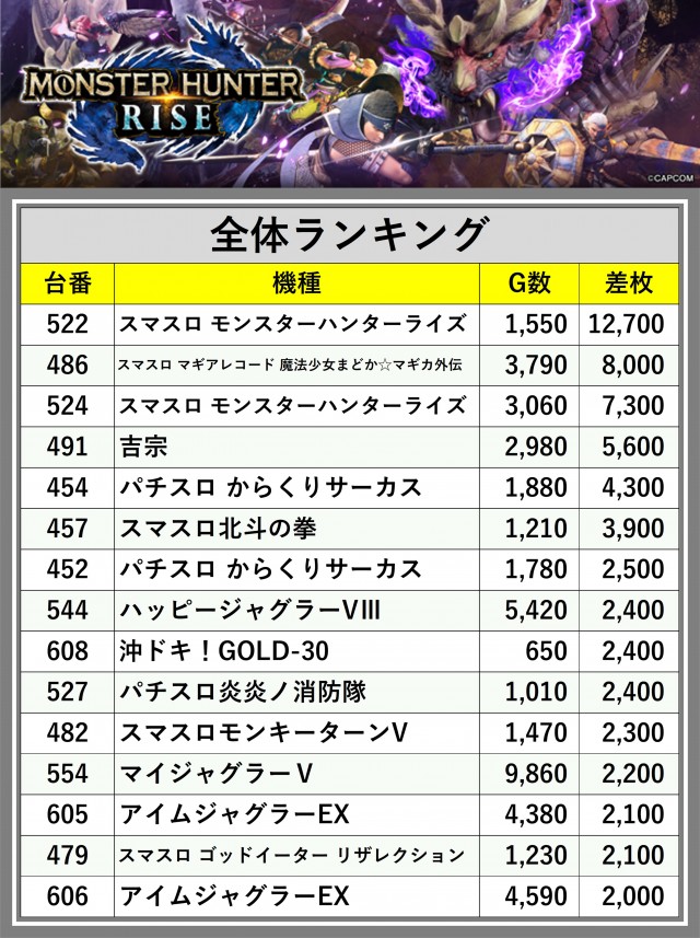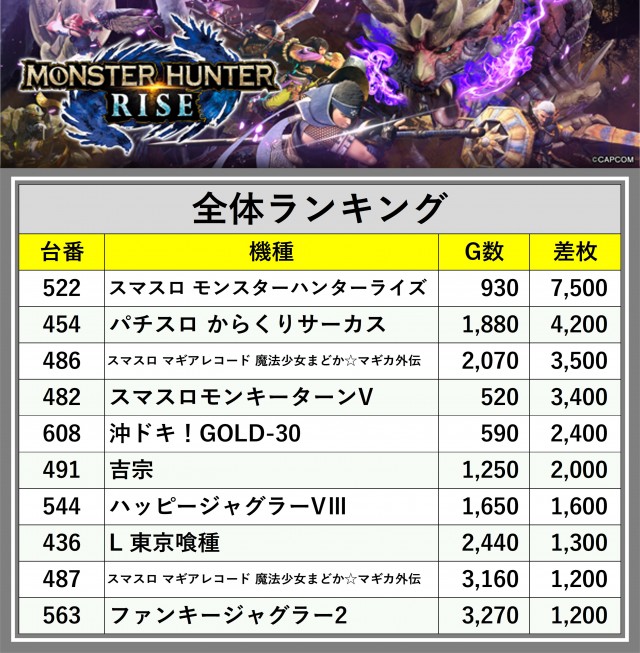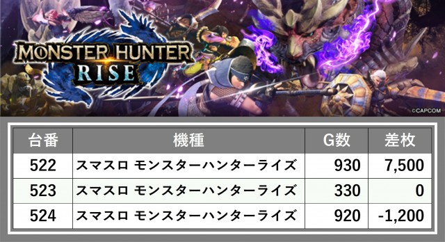 厳選された取材対象機種をはじめ、その他スロット全体から好記録が飛び出した!プレイヤーが楽しんだ1日を下記データにて振り返ってみて欲しい。