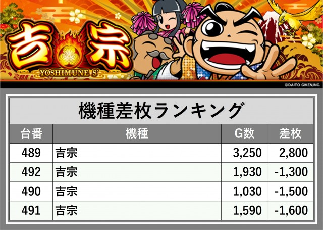 厳選された取材対象機種をはじめ、その他スロット全体から好記録が飛び出した!プレイヤーが楽しんだ1日を下記データにて振り返ってみて欲しい。