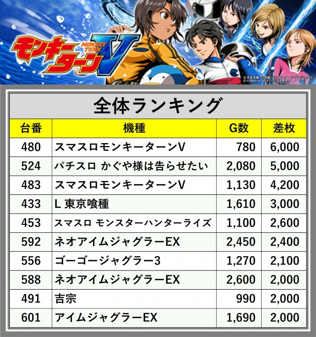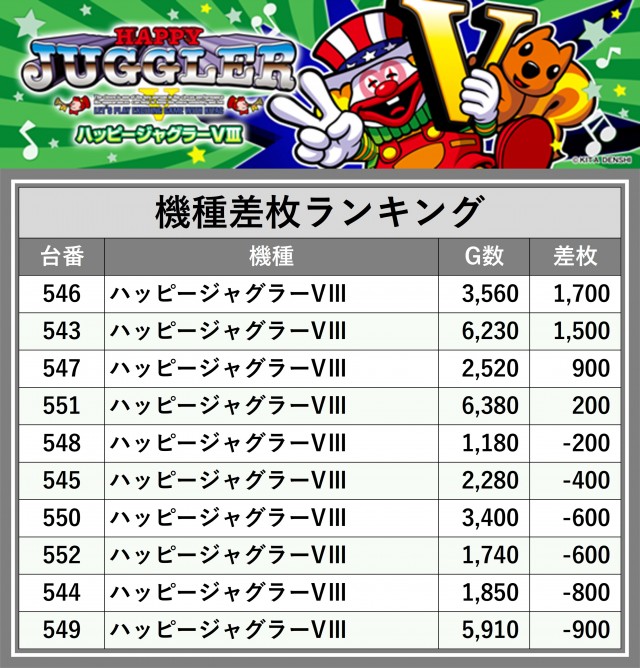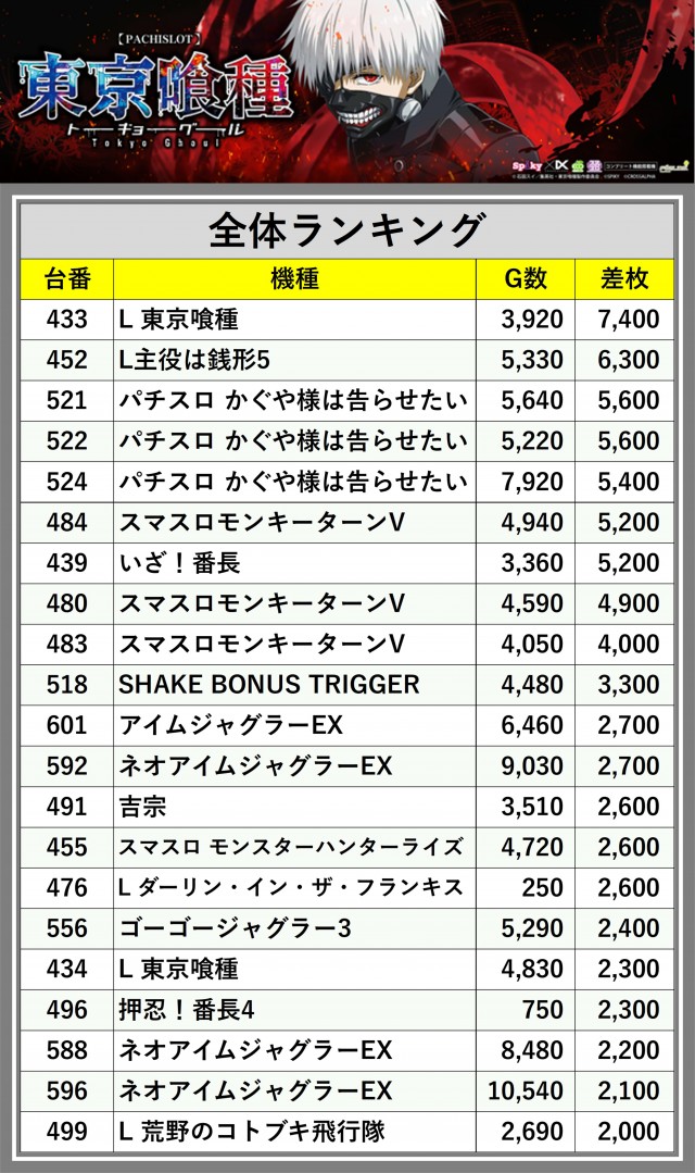 ※差枚数順に掲載しています