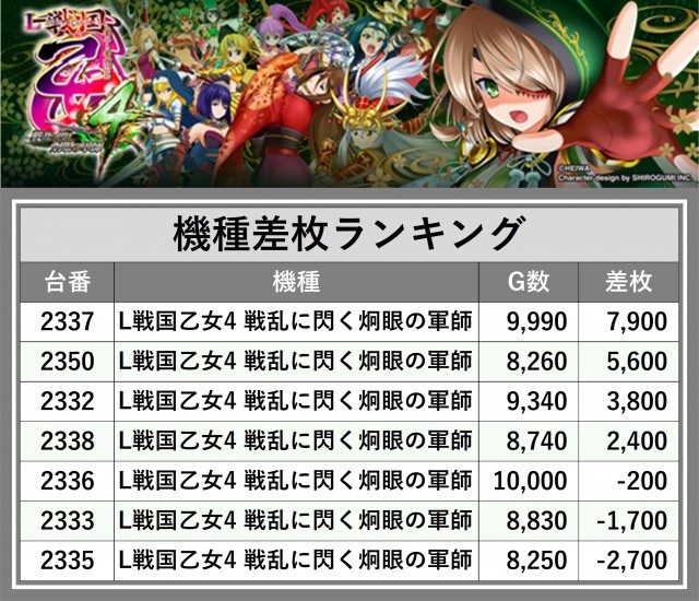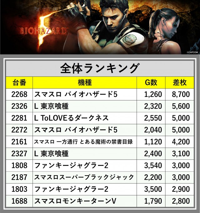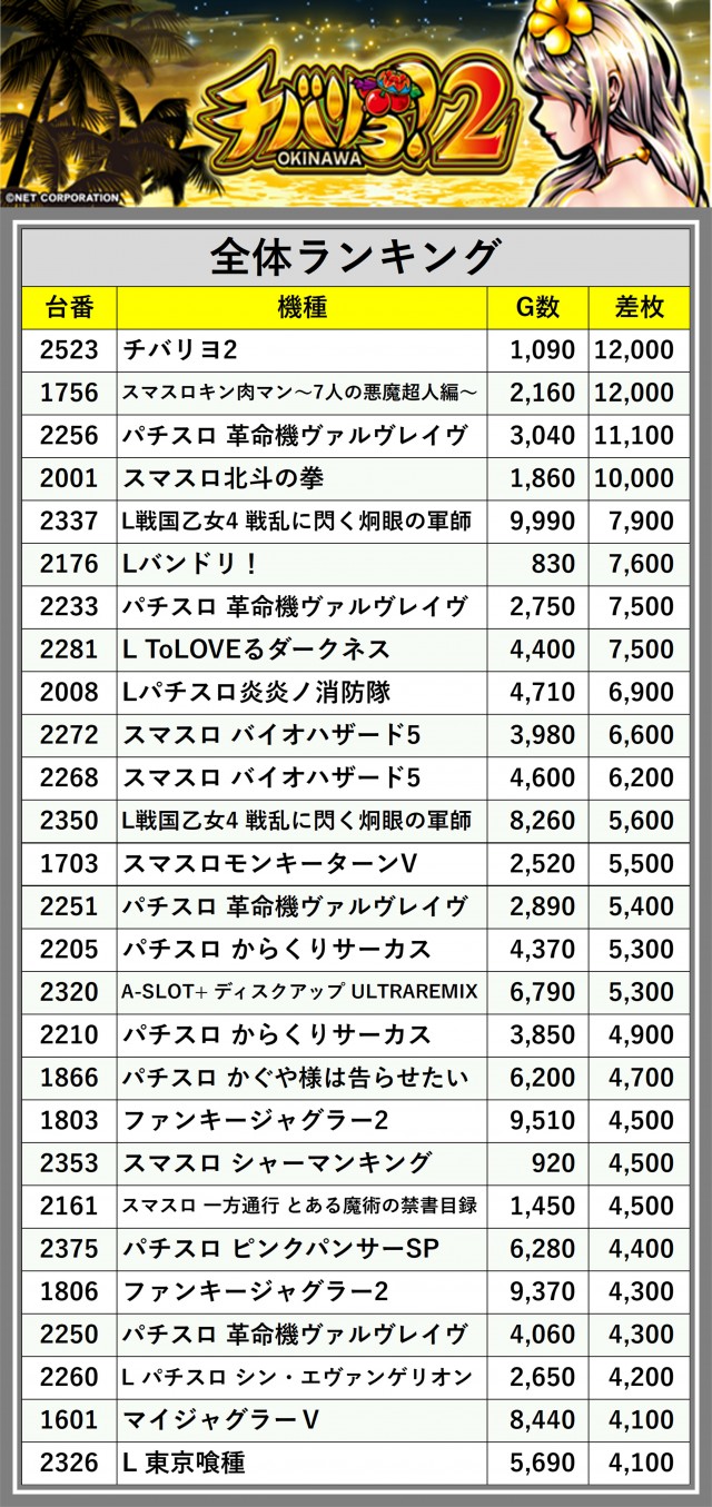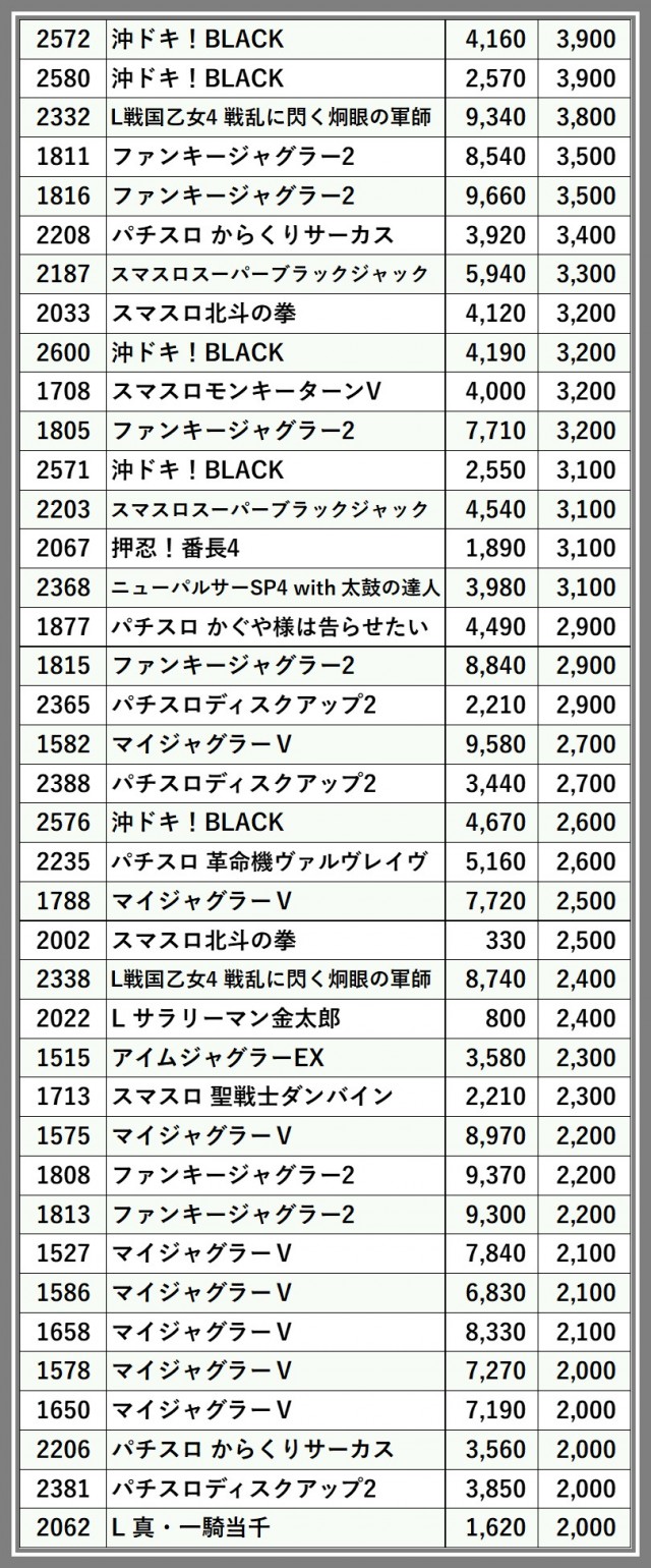 ※差枚数順に掲載しています