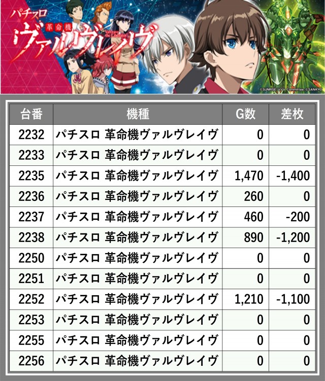 ※台番順に掲載しています