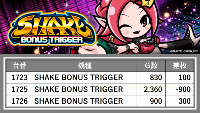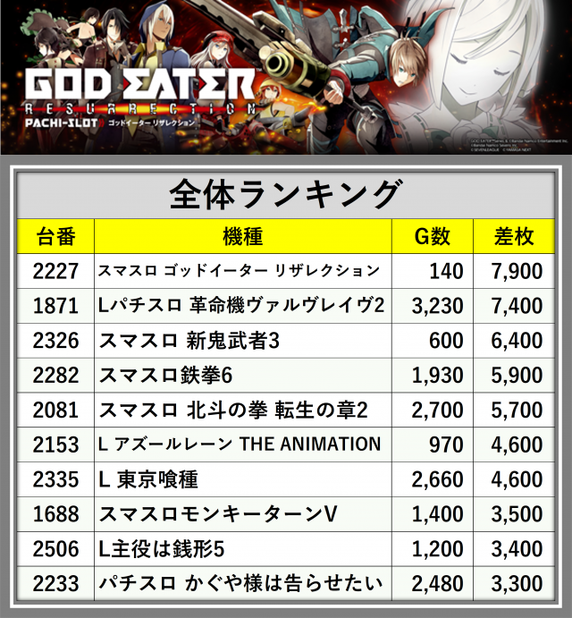 厳選された取材対象機種をはじめ、その他スロット全体から好記録が飛び出した!プレイヤーが楽しんだ1日を下記データにて振り返ってみて欲しい。