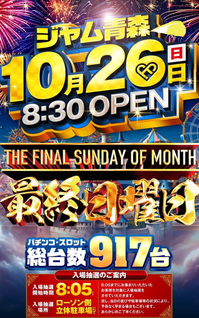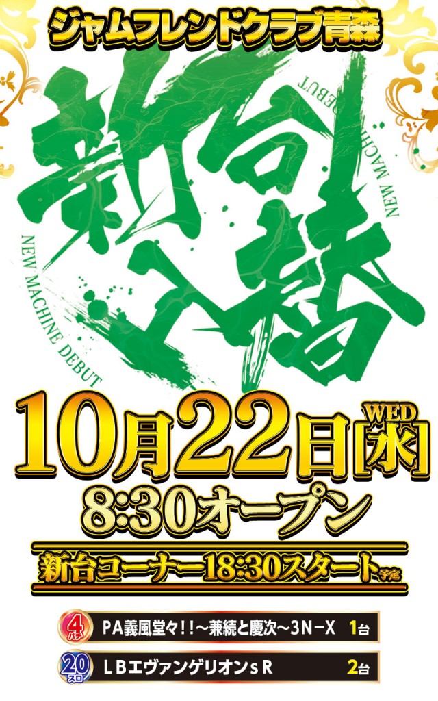 2025/10/22本日「新台入替」朝8:30オープン!新台コーナー18:30青森市本日10月22日(水)