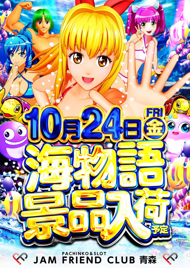 2025/10/24JAM青森からのお知らせ本日10月24日(金) 海物語景品入荷予定 入場抽選8:05スタート 全館8:30オープン 朝からのご来店を お待ちしております。