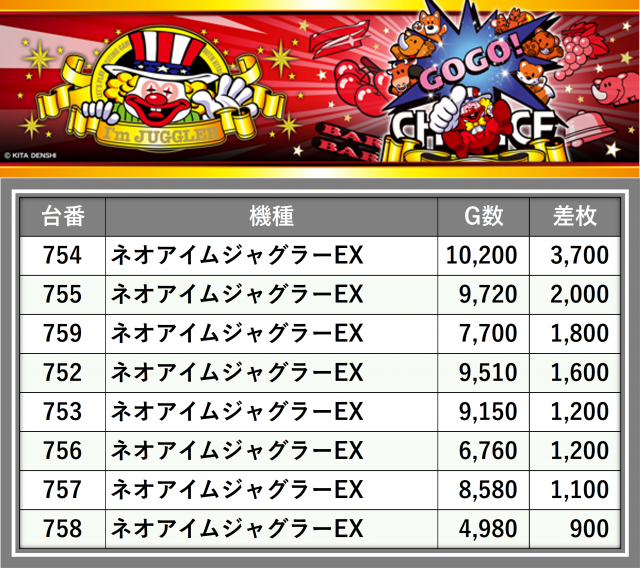厳選された取材対象機種をはじめ、その他スロット全体から好記録が飛び出した!プレイヤーが楽しんだ1日を下記データにて振り返ってみて欲しい。