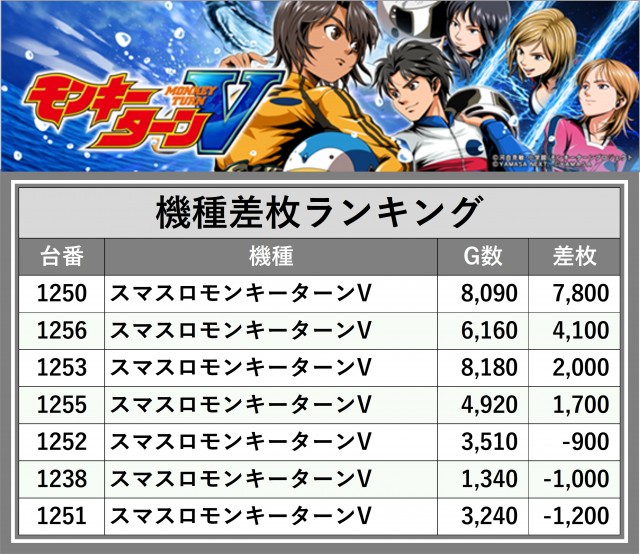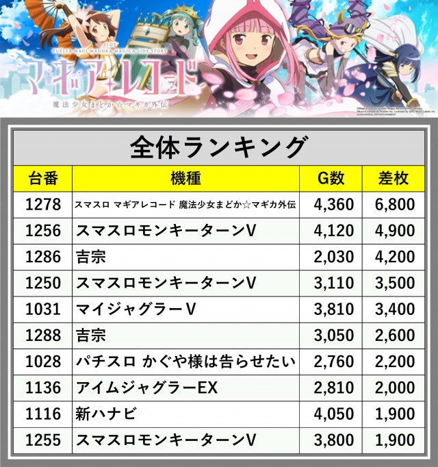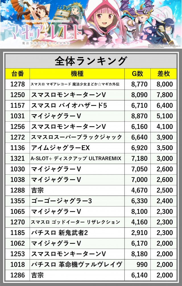 ※差枚数順に掲載しています