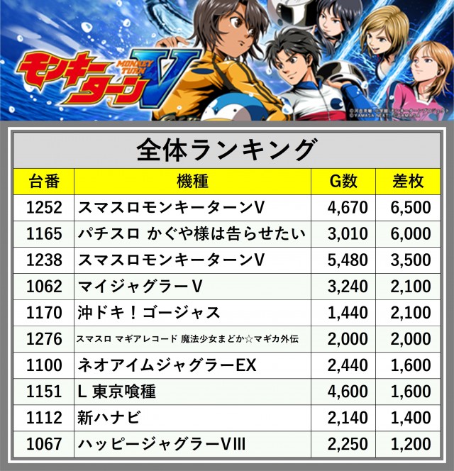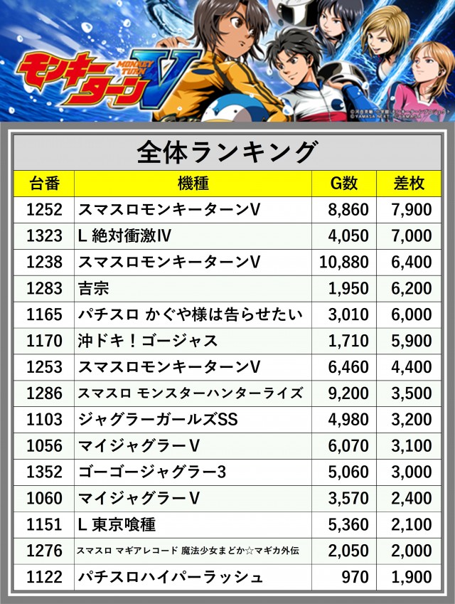 ※差枚数順に掲載しています