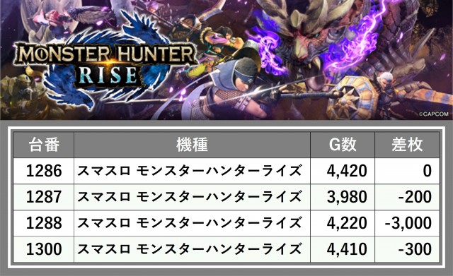 厳選された取材対象機種をはじめ、その他スロット全体から好記録が飛び出した!プレイヤーが楽しんだ1日を下記データにて振り返ってみて欲しい。