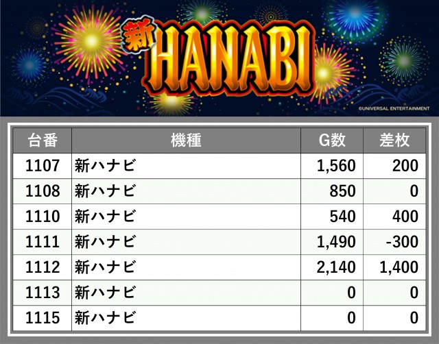 ※台番順に掲載しています