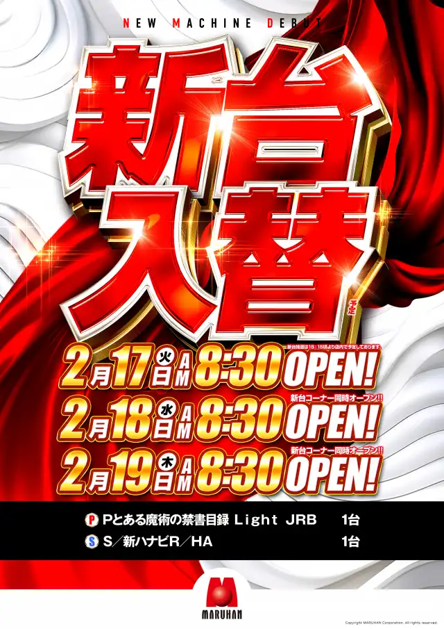 本日10月14日新台入替(予定)!詳細はHPをご覧ください!