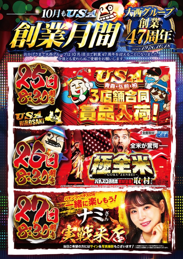 USA弘前店 27日 ナミさんご来店! 8:30オープン! たこ焼き屋台もあるよっ!