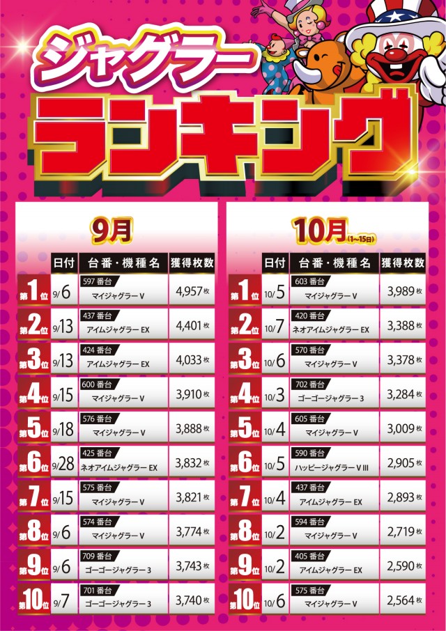 1位 10月6日(月) 2位 10月18日(土) 3位 10月17日(金)